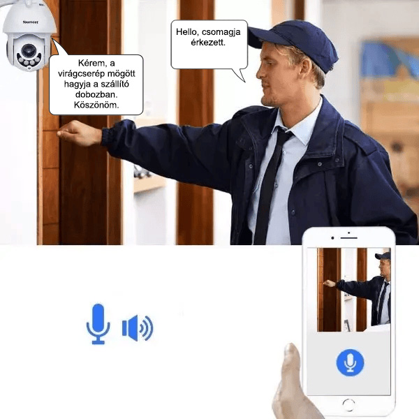 A kültéri biztonsági kamera beépített mikrofonnal rendelkezik. A kétirányú hang lehetővé teszi a vendégekkel való kommunikálást, a mozgásérzékelő riasztások segítségével gyorsan ellenőrizheti a nem kívánt látógatókat vagy arra kószáló állatokat.